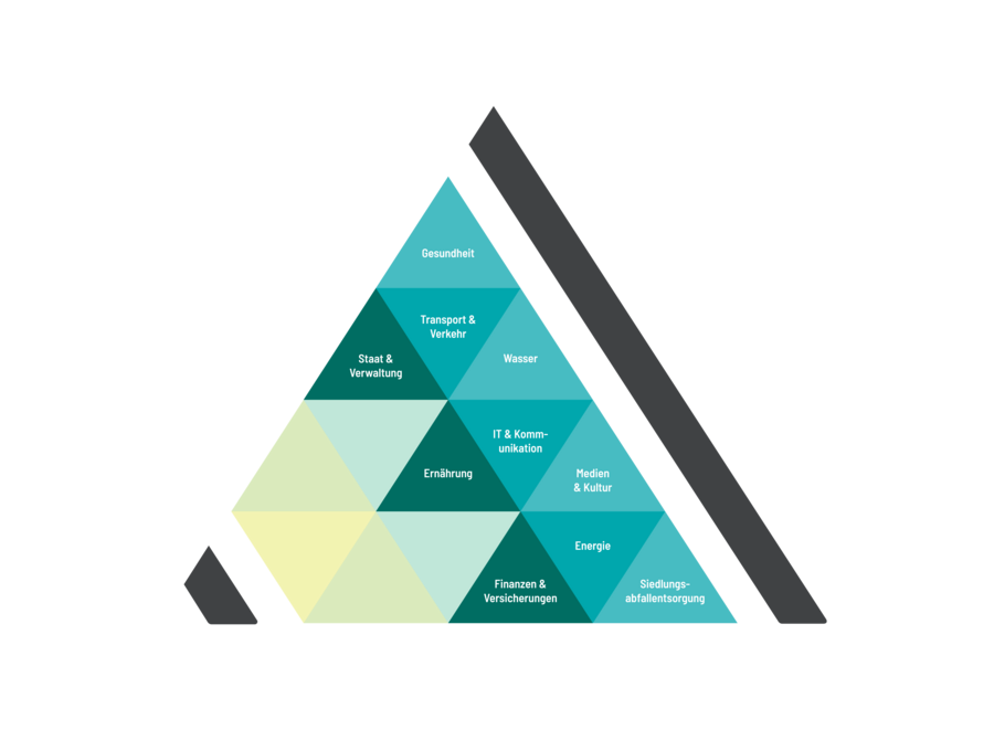 Abb. 1: Die Abbildung zeigt die Vielfältigkeit der nach deutschem Recht definierten KRITIS-Sektoren (BSI-Definition). Die zwischen diesen Sektoren bestehenden Interdependenzen sind Gegenstand der Forschung in vielen Disziplinen.
